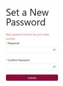 4. Put In Your Index Number and at the Index Number Space and the same Index Number as a password.